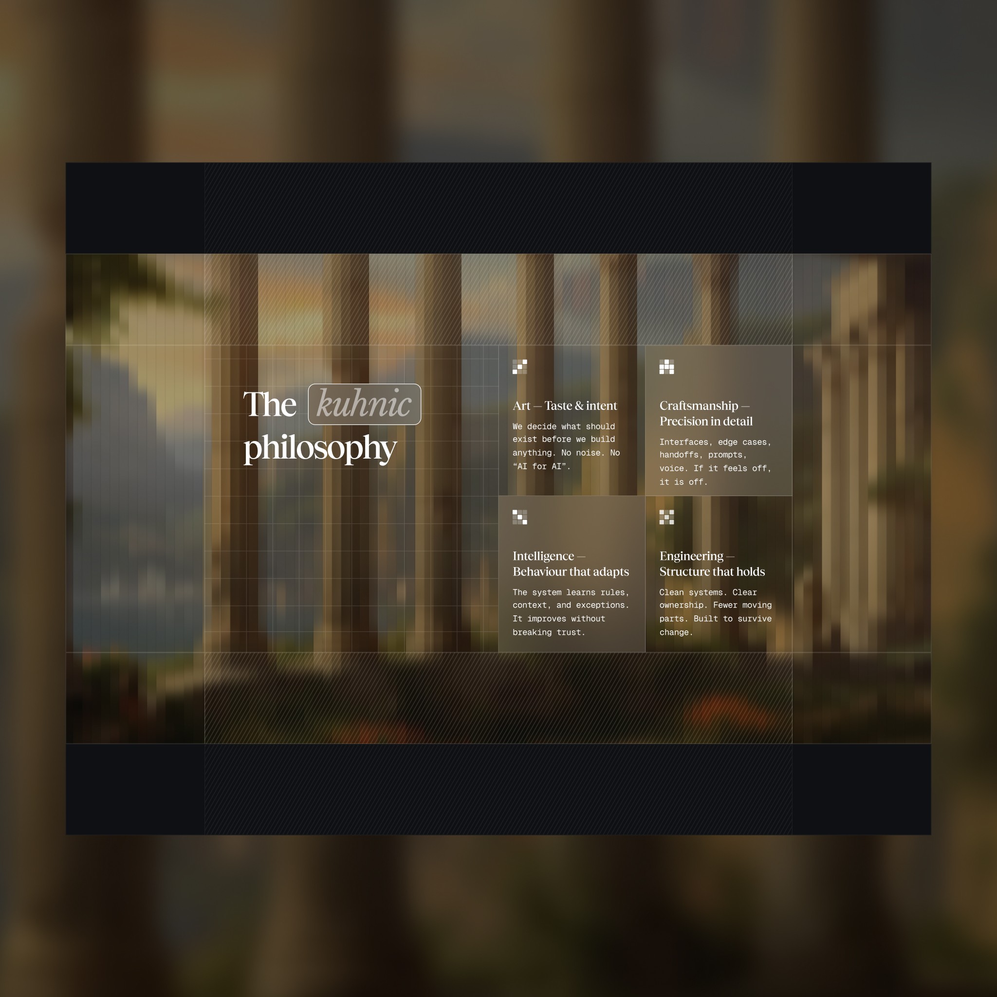 That's Kuhnic. They build complex AI systems that, when done right, feel effortless to the end user. The engineering is massive; the experience is elegant. The details are obsessive; the result is clean.
